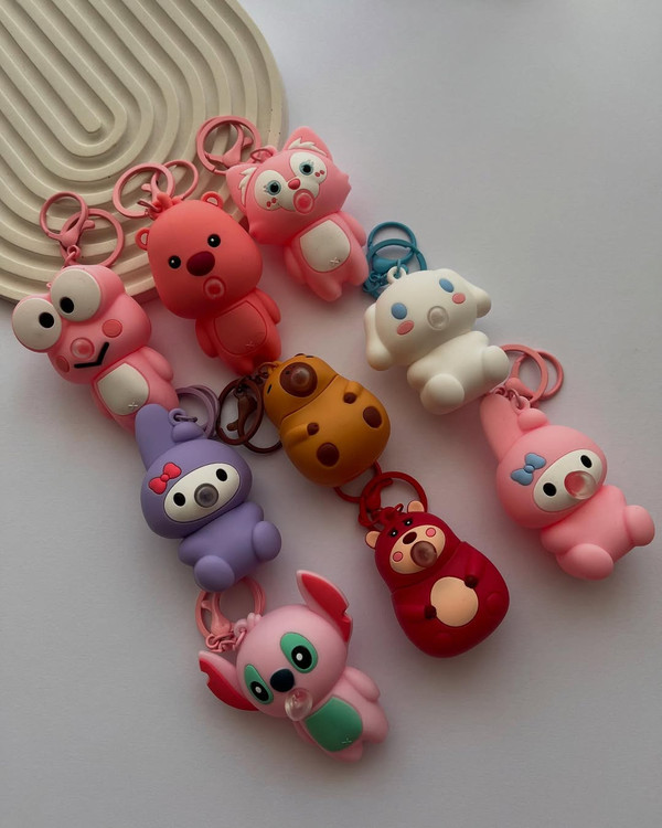 اویز کیف و کلید با طرح های کیوت و مناسب هدیه دادن برای روز دختر. جنس سیلیکونی و حلقه فلز کار وارداتی و درجه یک.